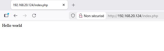 Ecrivez juste Hello World dans cette page, sauvez la et retourner sur le navigateur http://raspberry_IP/index.php